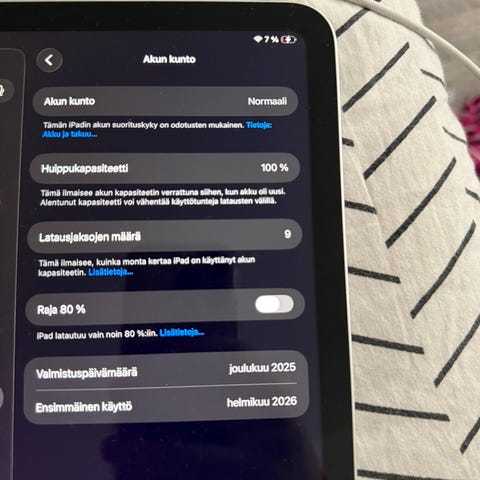 Erittäin hyvässä kunnossa oleva iPad A16, vuoden 2025 malli. Ensimmäistä kertaa otettu käyttöön elokuussa 2025 ja ollut hyvin vähällä käytöllä. Päivitetty uusimpaan iPadOS-versioon.