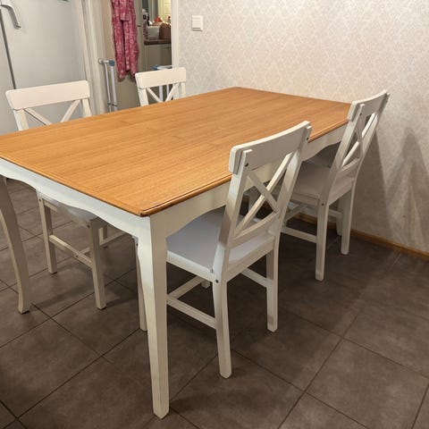 Myydään tukeva keittiön pöytä 185x90cm. Tuolit ei kuulu kauppaan. Pöytä purettuna.