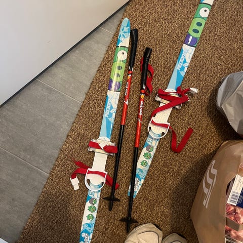 Ostetaan lasten sukset (90cm) ja sauvat remmikiinnityksellä.