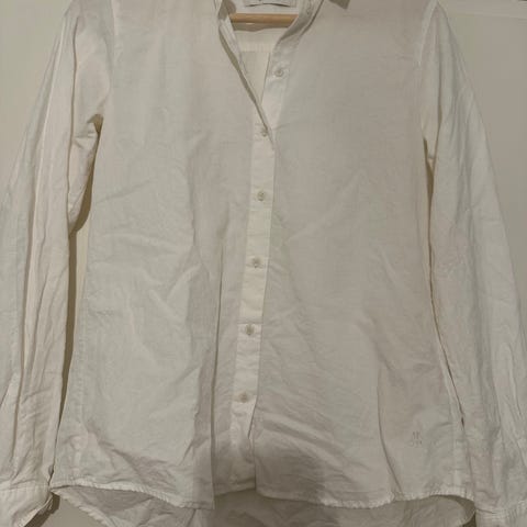 Marc O’Polon tunikamainen paita, koko 34. Väri valkoinen. Materiaali 100 % pellavaa. Pitkät hihat ja väljä, pidempi malli, jossa halkiot helmassa. V-kaula-aukko ja nappikiinnitys yläosassa.
