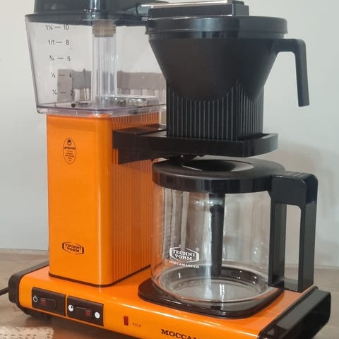 Moccamaster Clubline kahvinkeitin kaksipannujärjestelmällä. hyvä moccamaster tuplapannu kahvinkritin kaikki osat tallessa