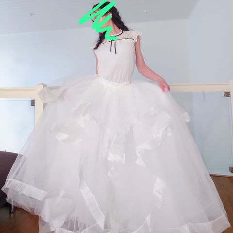 Vyö kiinnitetty itse, ei kuulu alunperin mekkoon, saa helposti irti.