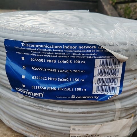 Onninen MHS 3x2x0,5 sisäkaapeli. Valkoinen televerkko- ja tiedonsiirtokaapeli sisäkäyttöön.
