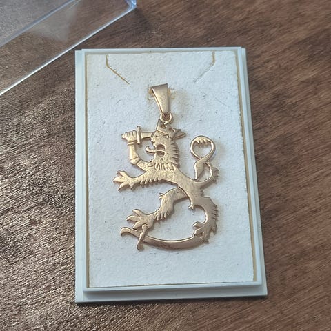 Kuvan mukainen leijonariipus, 14k kultaa, korkeus 14mm.