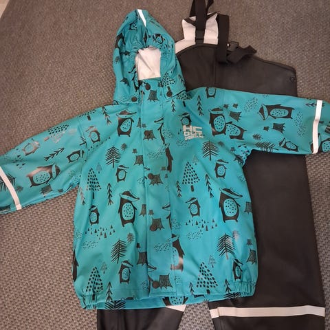Sadetakki ja sadehousut, koko 98. Hinta 5€