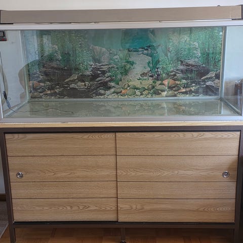 Otettu pois akvaariokäytöstä 27.2. eikä ole vuotanut, mutta silikonit huonossa kunnossa enkä takaa että pitää vettä. Suosittelen vaihtamaan silikonit tai käyttämään terraariona. Akvaario on huuhdeltu ja pyyhitty, kunnon siivous jää ostajalle.