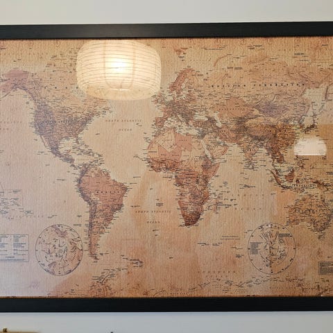 Suuri vanha maailmankartta puukehyksissä