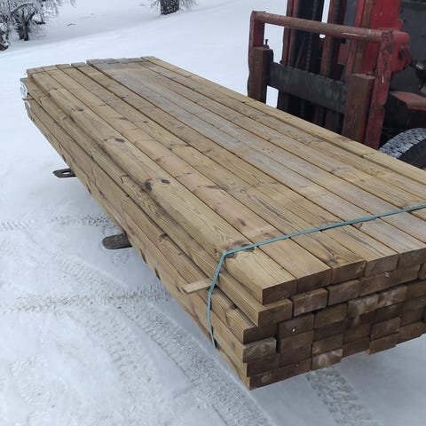Painekyllästetty runkopuu terassiin, portaisiin tai muuhun piharakentamiseen. Sopivan pituista peräkärryllä noutamiseen.