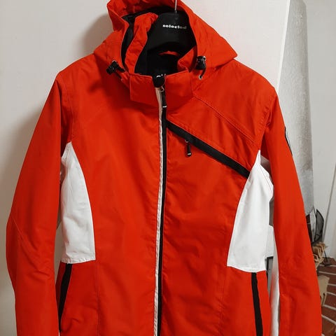 Hyväkuntoinen, 7 taskua, pesty, väri enemmänkin pinkinpunainen. Irrotettava huppu.