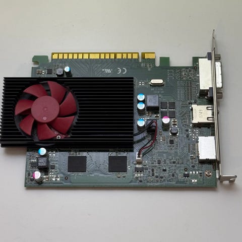 AMD Radeon R7 260X näytönohjain. Kortissa on yksi tuuletin ja se käyttää PCI Express -liitäntää. Lisävirtaliitäntänä on 6-pinninen PCIe-virtaliitin. Liitännöissä näkyy kaksi DVI-porttia, HDMI-portti ja DisplayPort-liitin. Soveltuu pöytätietokoneeseen, jossa on yhteensopiva PCIe-paikka ja riittävä virtalähde näytönohjaimelle.
