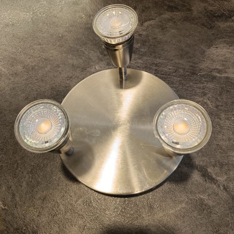 Ikean harmaa kattovalaisin kolmella säädettävällä kohdevalolla