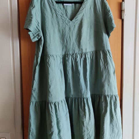 Myydään Nakoan ihana kerrosmekko pellavaa, väri vanhan roosan tyyppinen, koko L. Kunnoltaan kaikin puolin tosi siisti, ei mitään mainittavia moitteita. En ole ihan varma, että onko kainaloissa sisäpuolella aavistus valkoista dödöä, mutta ainakaan ulkopuolella ei näy mitään (kuvat molemmista). Kainalo-kainalo mitta n. 52,5cm, vastaa mielestäni hyvin kokoaan.
