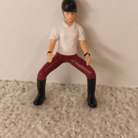 Papo shettlanninponi ja ratsastaja. Toinen jalustin rikki.