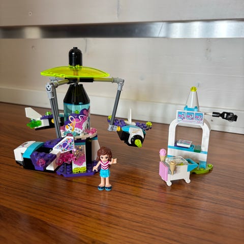 LEGO Friends rakennussarja, jossa on huvipuistoaiheinen kokonaisuus. Settiin kuuluu muun muassa vaaleanpunainen mustekalamainen karuselli, pieni myyntikoju sekä useita pieniä rakennelmia ja osia. Mukana on myös LEGO Friends -hahmoja sekä rakennusohjevihko. Sarja sopii LEGO Friends -teemasta pitäville lapsille ja kokoajille leikkiin ja rakenteluun.