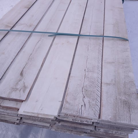 Pystylaudoitukselta näyttävää paneelia leveänä ja pohjamaalattuna alle 20 euron neliöhinnalla. Menekki reilu viisi lautaa metrin etenemälle eli tällä panelointi etenee vauhdilla.