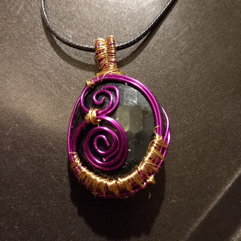 Itse tehty kaulakoru. Materiaalina on huopa ja puuhelmet. Sisällä joustava nauha.