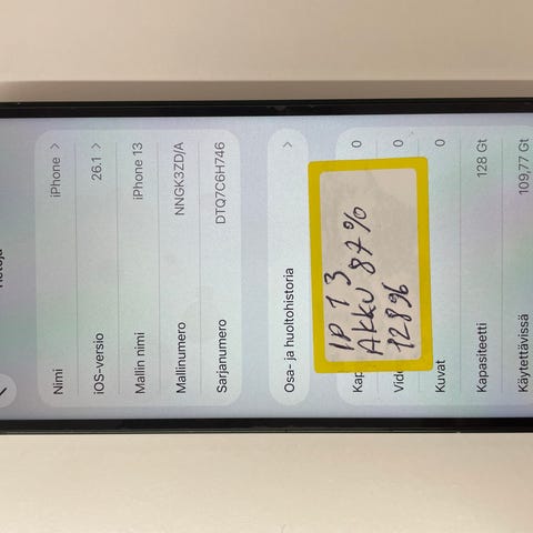 Lähes käyttämätön ylimääräiseksi jäänyt iPhone 13 128 GB vihreä (A2633 MNGK3KG/A)