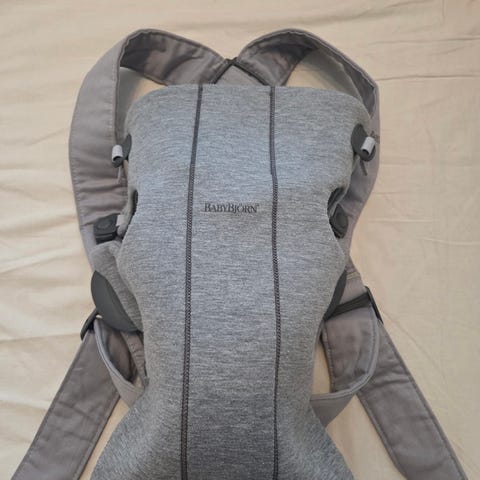Myydään hyvässä kunnossa oleva harmaa Baby Björn -rintareppu.