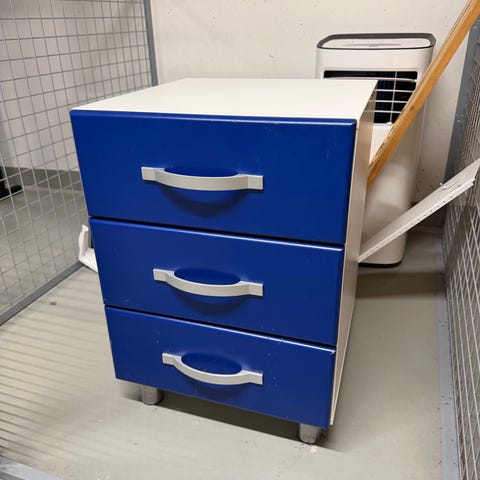 Micke sarjaa oleva valkoinen arkistokaappi pyörillä.
