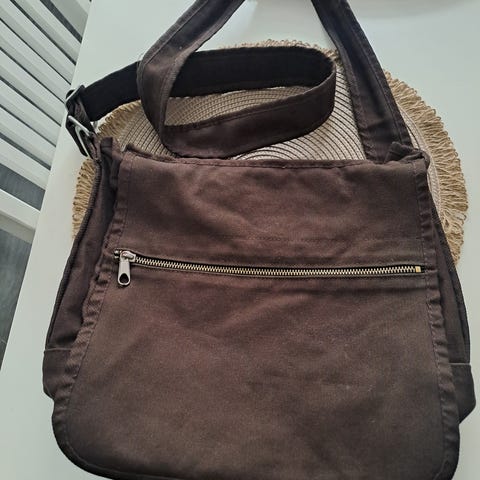 Hyväkuntoinen ruskea Marimekko urbaani olkalaukku.