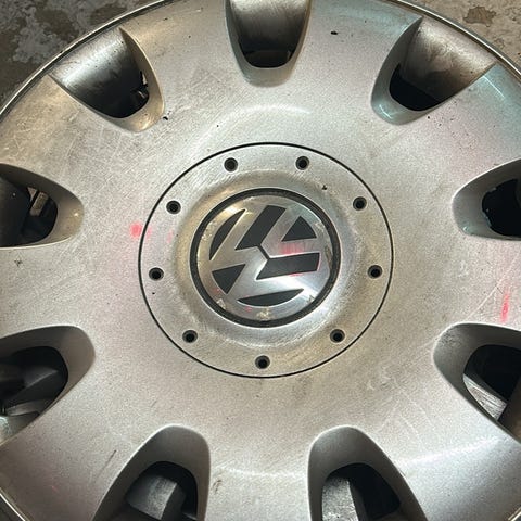 Volkswagen pölykapselit, hopeanväriset. Sopivat teräsvanteiden päälle auton alkuperäisen tyylin mukaisesti. Keskellä Volkswagen-logo. Materiaali todennäköisesti muovia. Kaksi erilaista monipuolisen puola‑/aukkomallin kapselia, halkaisija ei tiedossa. 15€ kpl