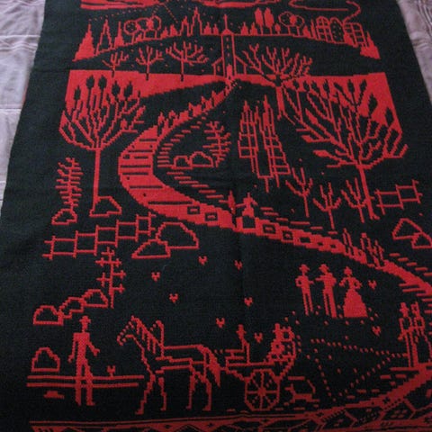 Hieno, hyväkuntoinen 1960-luvun täkänä, toisella puolen on vastavärit, kuva 2.