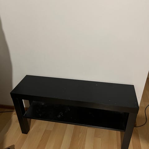 Annetaan Ikean valkoinen tv-tason runko. Kuvissa näkyy pahimmat viat, mutta muita kulumajälkiä löytyy myös niiden lisäksi.