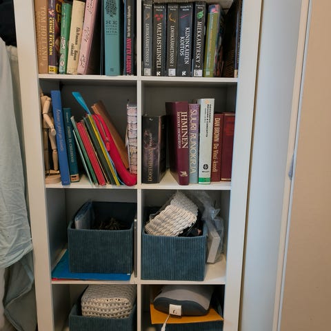 Valkoinen korkea kirjahylly, saa kiinitettyä seinään! k.170cm, l. noin 64cm. Nouto.