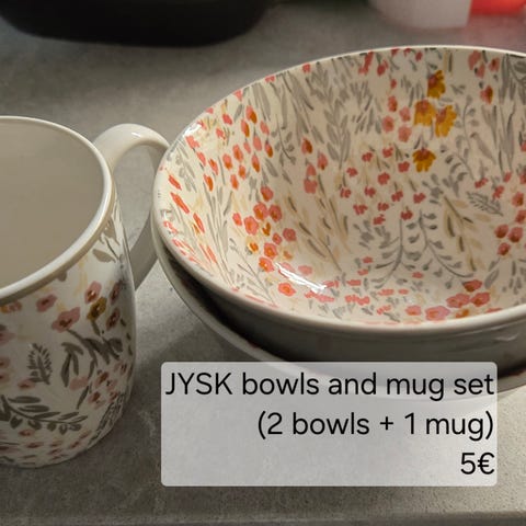 Mukana tulee 4 pienempää kulhoa sekä 4 isompaa kulhoa.