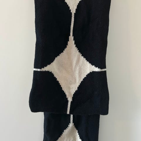 Marimekko logo kaulahuivi. 70 % kierrätettyä villaa. Materiaalilappu leikattu. 70% villa, 25% polyamidi, 5% muita kuituja. Uudenveroinen kunto. Koko n. 48,5 cm x 185 cm + hapsut