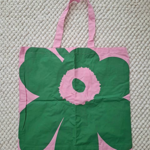 Myydään täysin uusi Marimekon kangaskassi 75-vuotisjuhlakuosilla. Näitä löytyy toinenkin; hinta 30 € yhdelle.