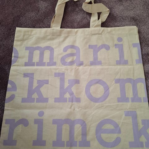 Myydään täysin uusi Marimekon kangaskassi perinteisellä kuosilla tummanpunaisin tekstein. Näitä löytyy 3 kpl, hinta 20 € yhdelle.