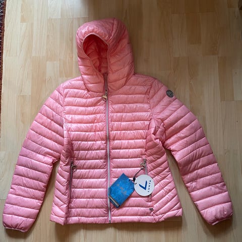 Happy Duck vaaleanpunainen kevyt toppatakki koko 42, kokolappu 44 Sopii paremmin 42 kokoa käyttävälle.