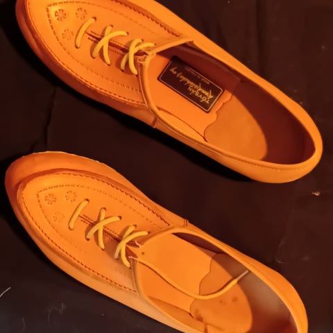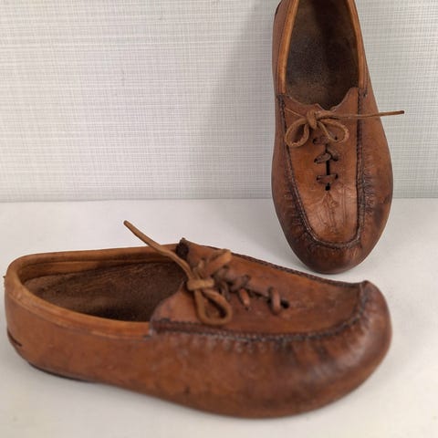 Käytetyt mutta ehjät supikkaat, nahkaa. Sisämitta 22,5 cm, ulkomitta 25 cm pohjasta mitattuna.