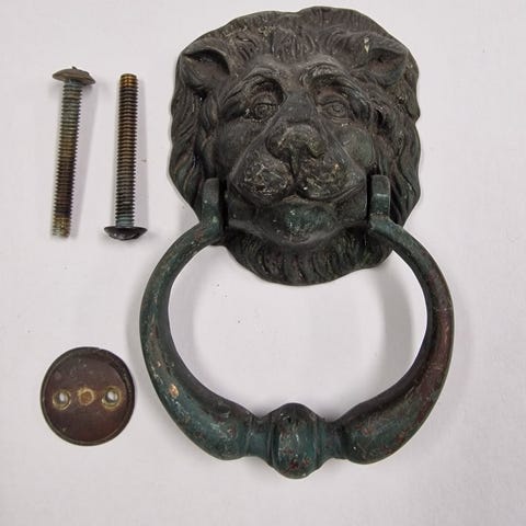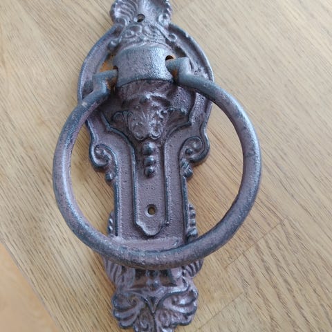 Tämä on erittäin suuri ovi-kolkuttaja. Erittäin raskas, valurautainen ja kauniin kultaisen/pronssin värinen.Korkeus: 32 cmLeveys: 18 cmKaikki tuotteemme pakataan huolellisesti ja lähetetään vakuutettuna.