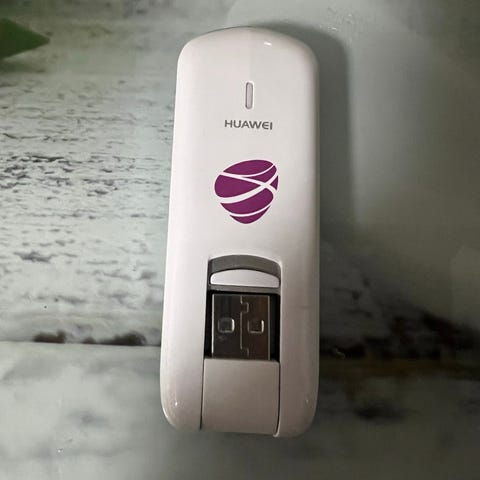Huawei 4G USB -modeemi. Väri valkoinen. Laite liitetään tietokoneeseen USB-liitännän kautta ja sitä voidaan käyttää mobiililaajakaistayhteyden muodostamiseen 4G-verkossa. Soveltuu käytettäväksi kannettavien ja pöytätietokoneiden kanssa, joissa on vapaa USB-portti