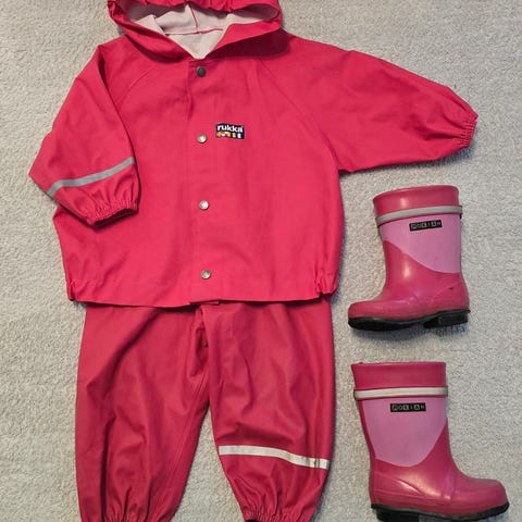 Sadetakki ja housut, leopardikuvio, koko 80