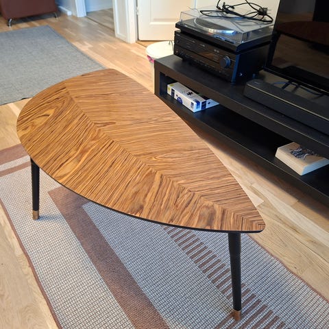 Myynnissä muutossa ylimääräiseksi jääneet Ikean Frötorp iso sohvapöytä ja pienempi ja korkeampi apupöytä.