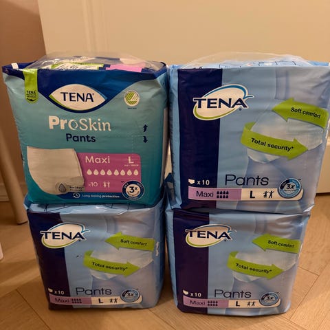 Myydään laatikollinen Tenan aikuisten housuvaippoja.