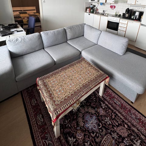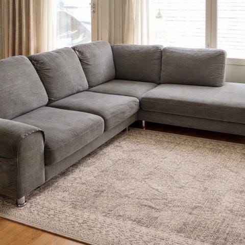 kulmasohva vaaleanharmaa(beige )kangas. (Masku)