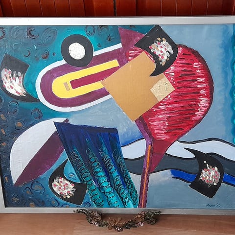 Hakusanat: öljyvärimaalaus, sisätilanäkymä, v. ems, taide, Paketoitava, kehystetty