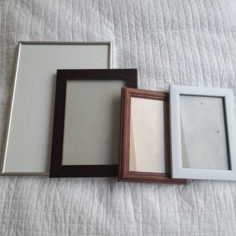 Myydään vanha puukehys. Harmaan värinen ja kullanvärinen reuna.