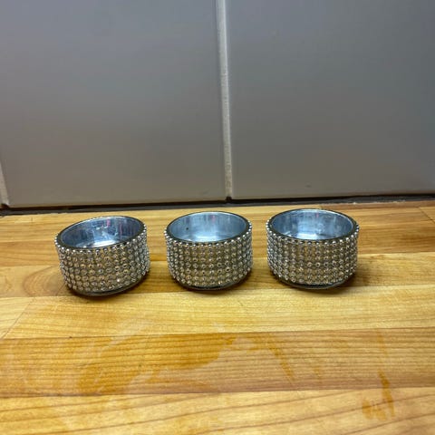Valotaulu, useita kirjaimia ja merkkejä, myös käyttämättömiä, toimii paristoilla, voi ripustaa myös seinälle. Korkeus 22 cm, syvyys 6 cm, leveys 30 cm. Kullan väriset siivet, korkeus 31 cm. Kaksi lasimaljakkoa yksittäisille kukille tai kapeille kimpuille, Ikea, korkeus 23 cm.