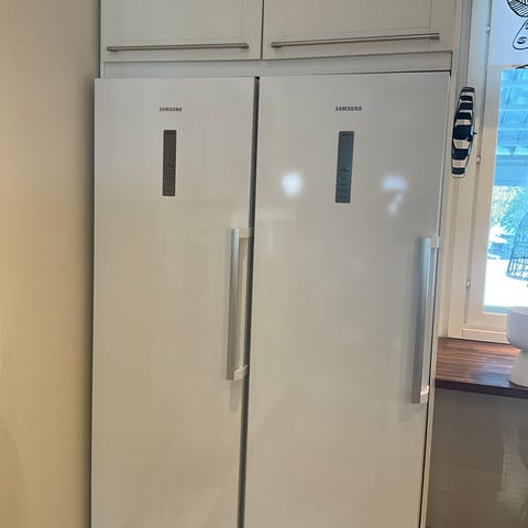 Samsung jääkaappi, väri valkoinen. Vapaasti sijoitettava, korkea malli pystykahvalla. Etupaneelissa kapea näyttö- tai ohjausalue. Soveltuu keittiökäyttöön elintarvikkeiden viilennykseen ja säilytykseen kotitaloudessa. Leveys 60 cm. Myös kuvan pakastin myydään 250 €. Kolme vuotta vanha.