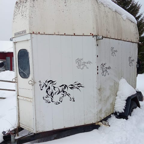 Haussa hyväkuntoinen hevostraileri, etupurku tai diagonaalilastaus. Alumiinilattia.