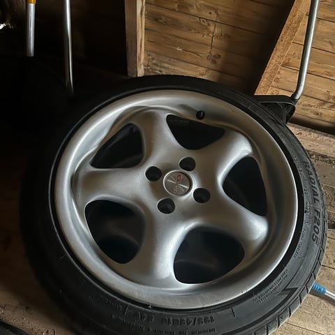 Kumit on entiset ja vanteet hieman kuluneet. Omaan autoon liian isot joka tapauksessa.
