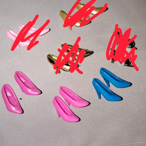 Barbie Benetton liikkeen sovitusnuket, peili, naulakko ja hajuvesimainos. Peilin toiselta puolen kuva osittain repeytynyt. Peiliosan korkeus 36,5cm.