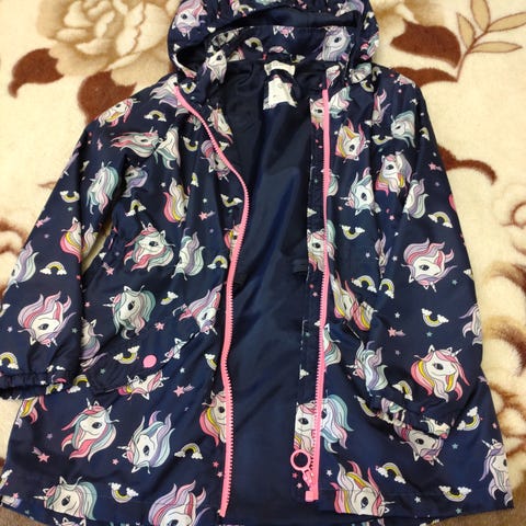 Harmaanvihreä kevyt välikausitakki joka pitää tuulta ja tihkusadetta. Vain vähän ehditty pitämään kun poika hurahti takista ohi. Ostettu uutena vuonna 2025.