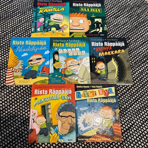 Sinikka ja Tiina Nopolan Risto Räppääjä -lastenkirjat, kovakantinen kirjasarja.