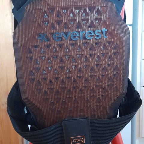 Junior-kokoinen selkäpanssari lasketteluun ja lumilautailuun. Ollut käytössä noin 130-140cm lapsella, valmistajan ilmoittama vaihteluväli jonkin verran tätä suurempi. Vyö on takaa tarralla kiinni ja sen korkeutta voi säätää.